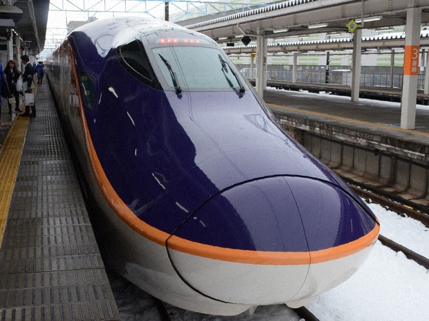 The easiest and most common way to get here is via the Yamagata Shinkansen, also called the Tsubasa. From Tokyo Station, it’s a 2.5 hour trip that is quite scenic. Note that all of the seats on this train are assigned, so you will need to purchase a reserved seat ticket. If you’re lucky, you might even get to ride on the newly launched train series, the E8 (pictured below)